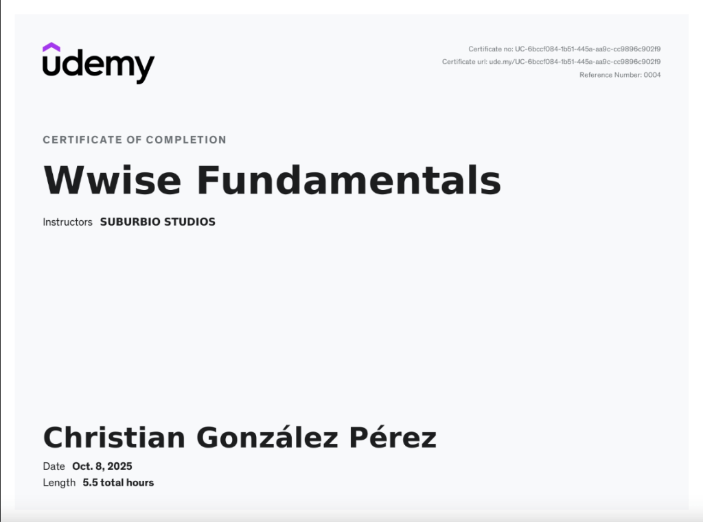 En 2023 inicié mi recorrido como compositor de música para videojuegos, centrado en el diseño de experiencias interactivas e inmersivas. Desde entonces, también trabajo en diseño sonoro, efectos especiales (SFX) y ambientaciones específicamente pensadas para videojuegos.